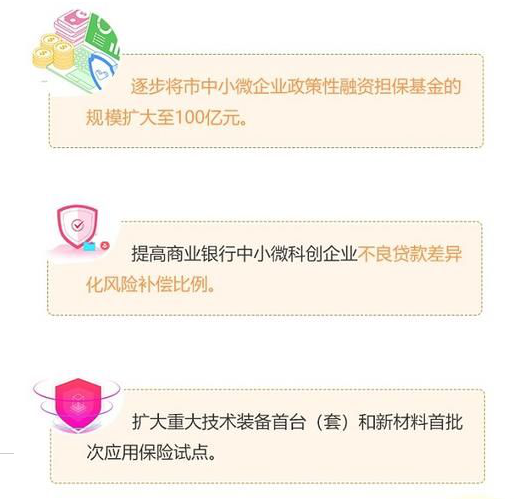 “浦江之光”行动提出一系列量化的具体措施。如:逐步将中小微企业政策性融资担保基金的规模扩大至100亿元等措施;“科技创新券”补贴比例不限于50%,“四新券”补贴比例不限于30%;金融机构为优质科创中小民营企业提供信用贷款和担保贷款不低于100亿元,为科技创新中小微企业再贷款额度不低于100亿元、再贴现额度不低于150亿元等。
